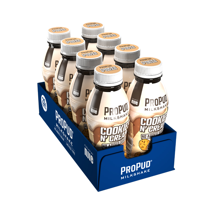 Storsäljande NJIE Propud Milkshake - här med smak av klassisk "Cookies & Cream". Alltid laktosfri och fullproppad med vassleprotein.