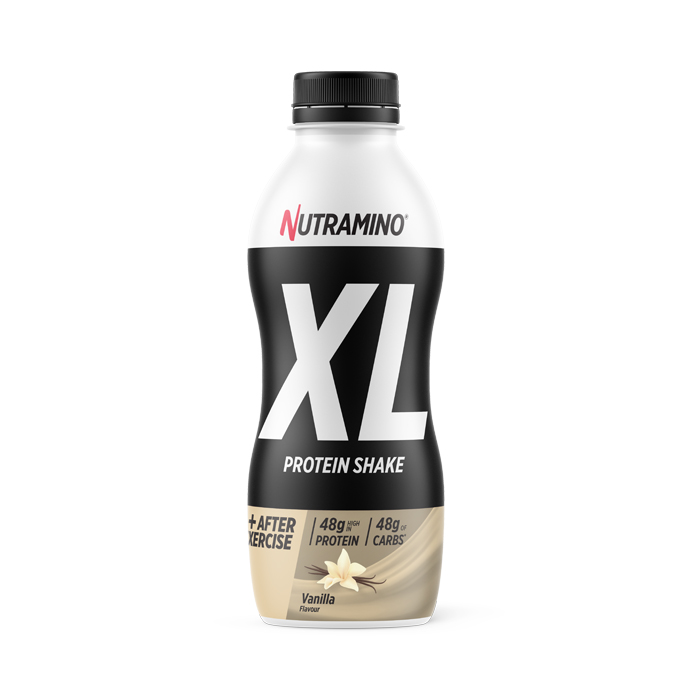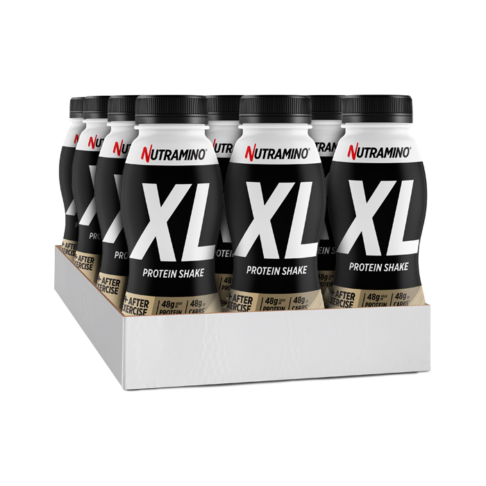 Nutraminos klassiska XL Shake i uppdaterad förpackning (475 ml). En flaska innehåller 48 (!) gram protein och 48 gram kolhydrater - perfekt för återhämtning efter ett tufft träningspass Mer information