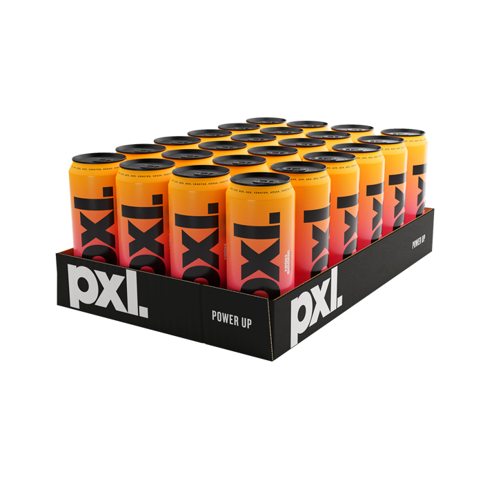 PXL är en kolsyrad energidryck med en högkvalitativ 200mg dos koffein. Aromerna kommer från toppproducenter som skapar fullt utvecklade smaker utan den bittra uppbyggnad som aromer av lägre kvalitet lider av. Vi vill att den första klunken välkomnar dig ombord och den sista ska lämna dig med lyckliga minnen. Vi kommer alltid att kämpa på oss för att producera den bästa energidrycken på marknaden!