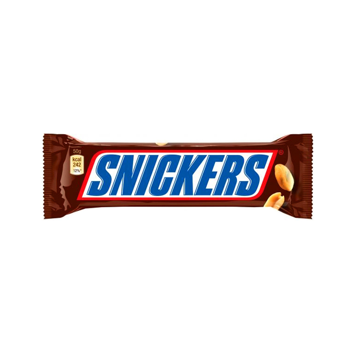 Snickers är perfekt när du snabbt behöver stilla din hunger. Snickers består av mjuk nougat, kolasås, jordnötter och härlig choklad. Mer information